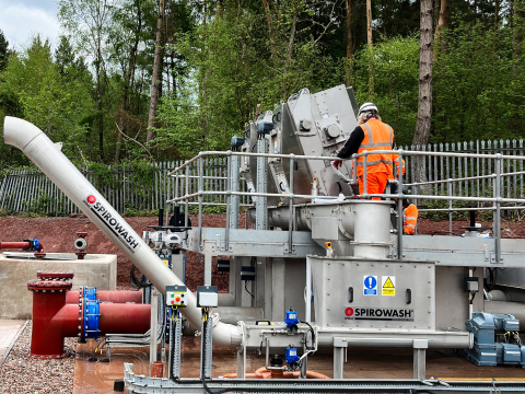 - Two SPIROWASH® screenings washing units, each capable of handling up to 2.5m3/hr volume. The units receive screenings from the screw conveyor and clean, dewater and compact the screenings, before discharging via press tubes into a skip.