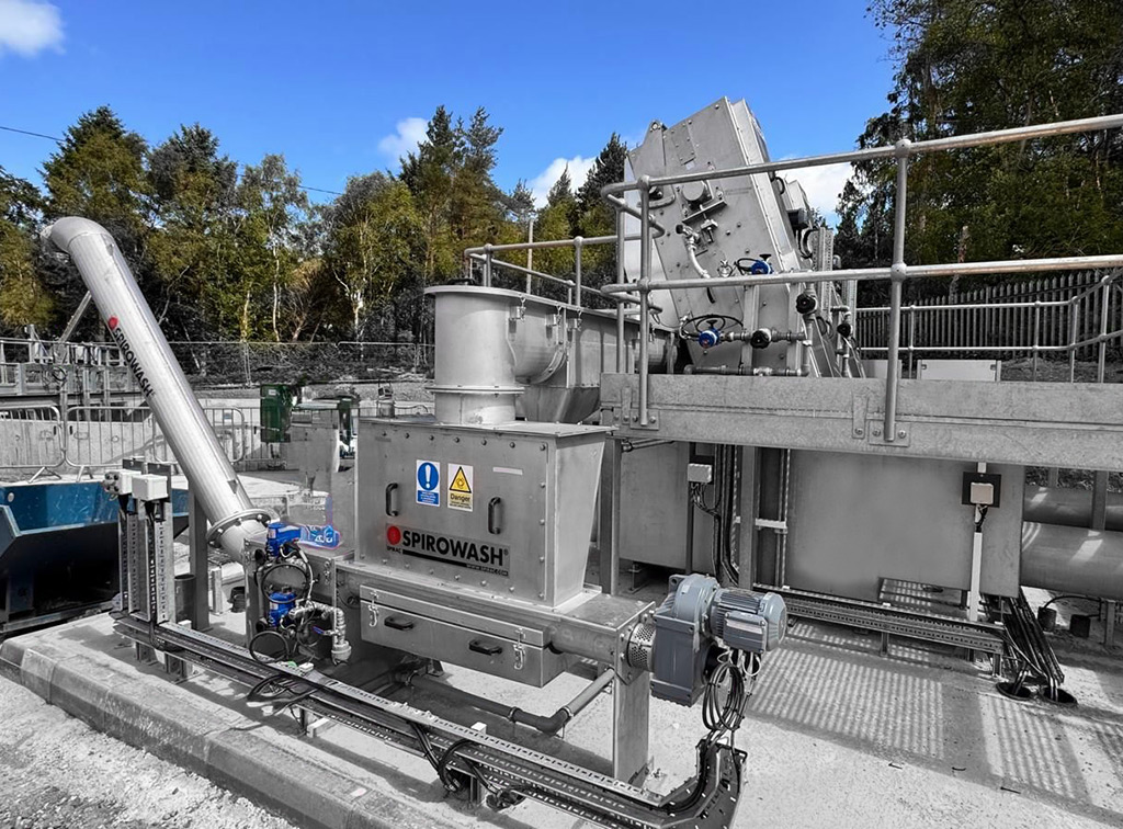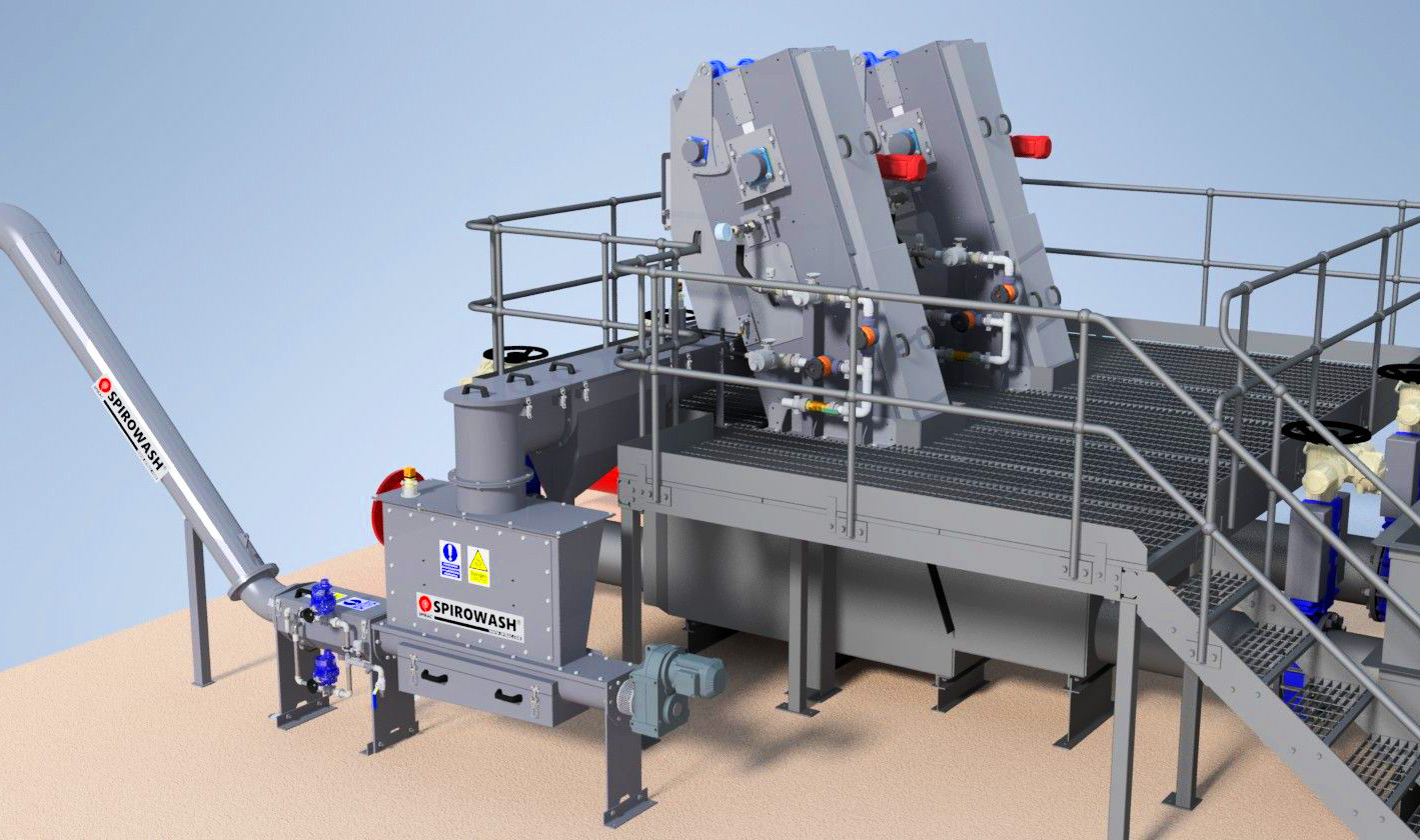 - Two-stage cleaning of screen media - including a rotating self-adjusting brush and water jets, that requires only a low volume of wash water.