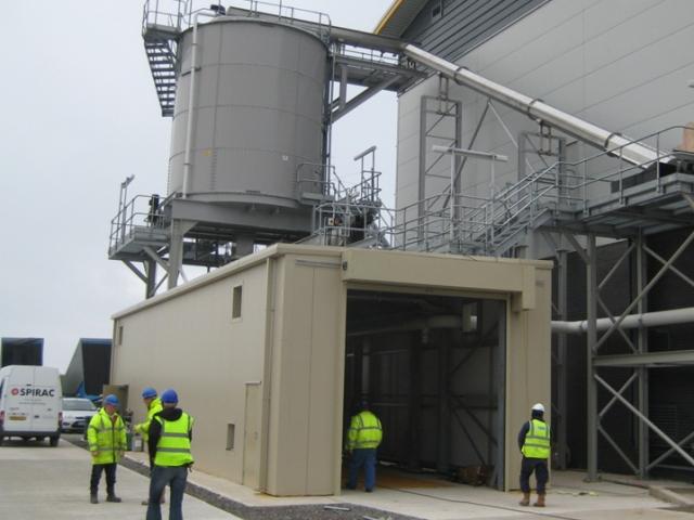 This dewatered sewage sludge project features a bolted construction cylindrical silo atop an elevated sliding frame outloading system which feeds a high capacity drive through truck bay with a net volume of 120m3/160yd3
