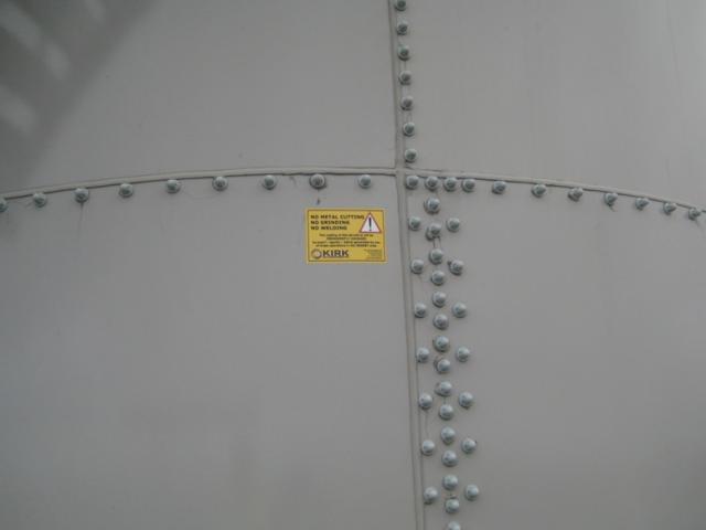 The 5m/16ft D x 6m/20ft H silo is top filled by a SPIRAC spiral conveyor train including a 25m/80ft long x 30 degree incline conveyor. The silo includes a fusion bonded powder coat paint finish, with plastic capped and epoxy sealed bolting system.